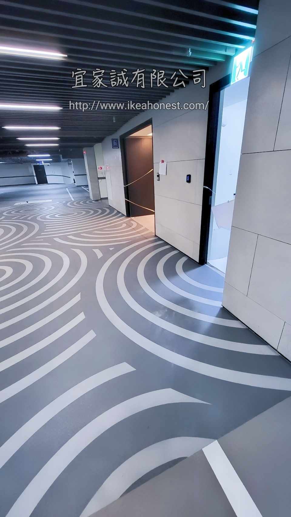 的地下停車場,環氧樹脂地坪可以防止行人滑倒。